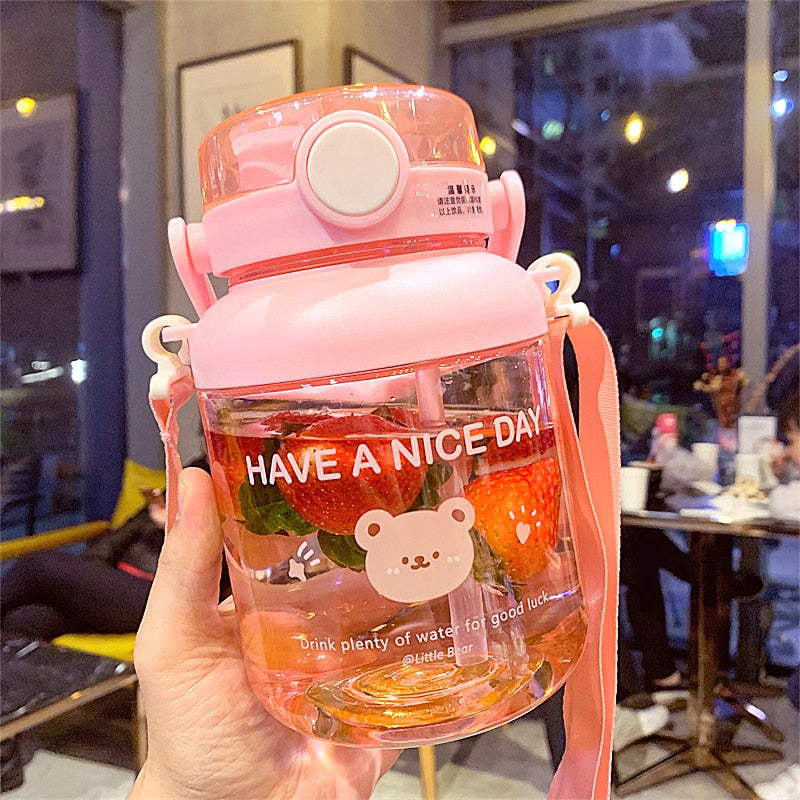 Cute Bear Water Bottles For Girls Kids With Straw 1000/1300ml Large Capacity Water Bottle Kawaii Juice Bubble Tea Drinking Cup