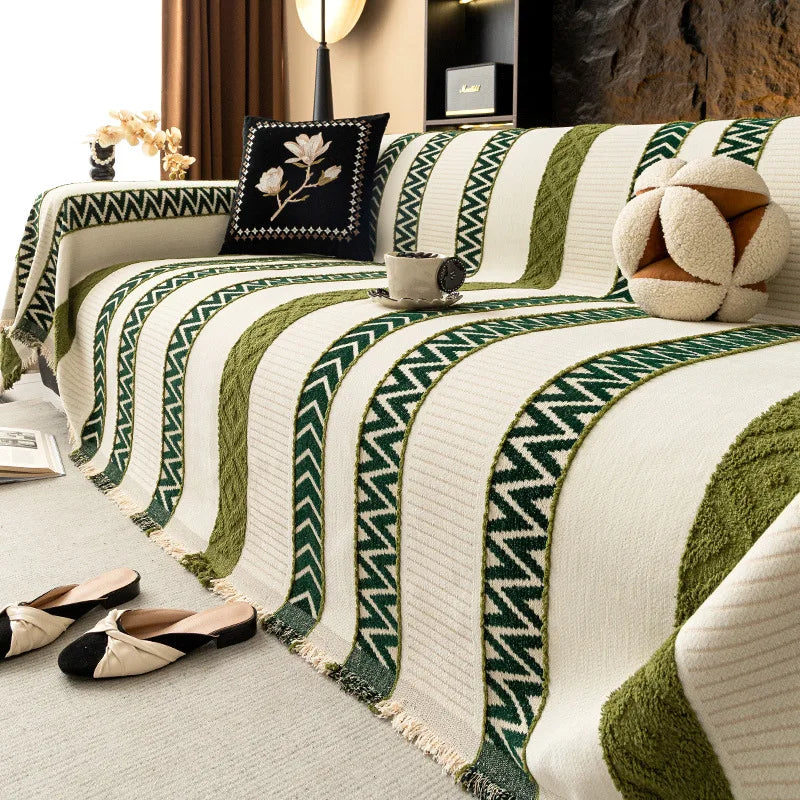 New Striped Velvet Sofa Towel with Tassels High Quality Soft Skin Friendly Blanket for Office Adjustable Dustproof Couch Covers